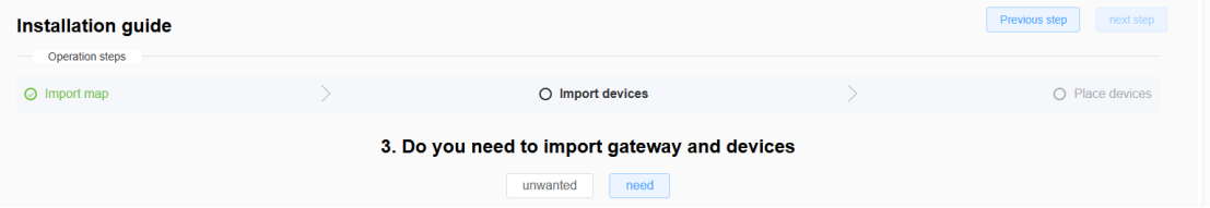 - Do you need to import the gateway? If you need to, click need. If not, click unwanted.