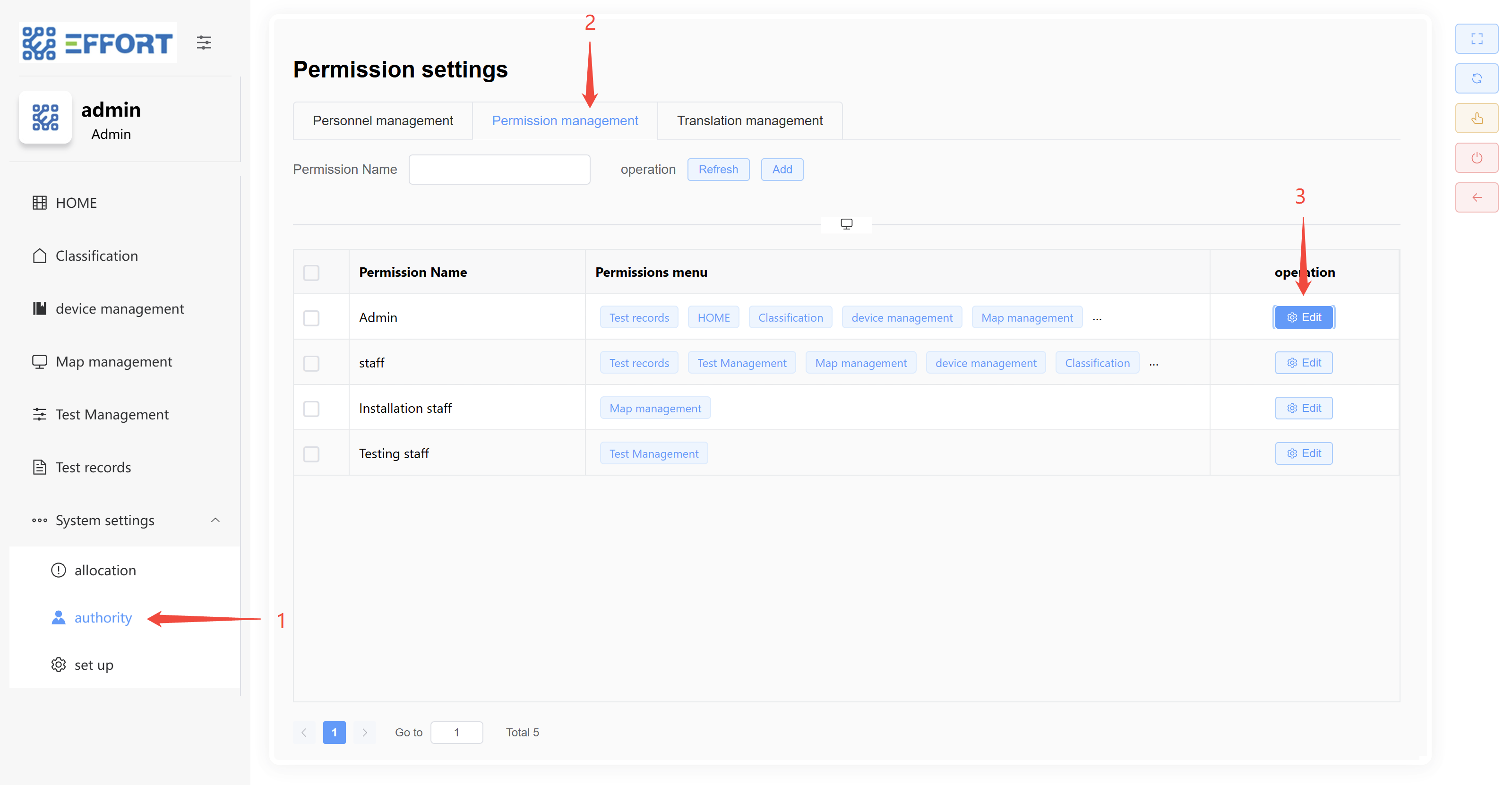 - 步骤 1:点击 Settings /Equipment Type Management,进入设备分类管理页面