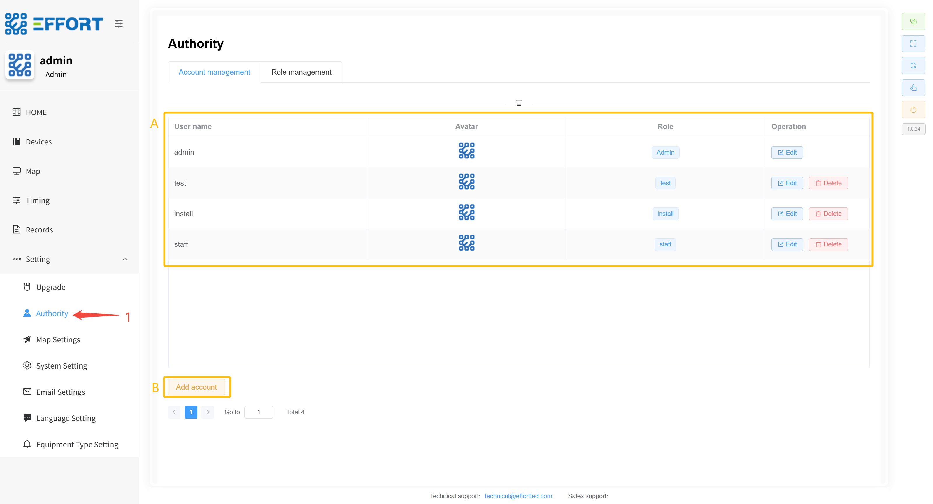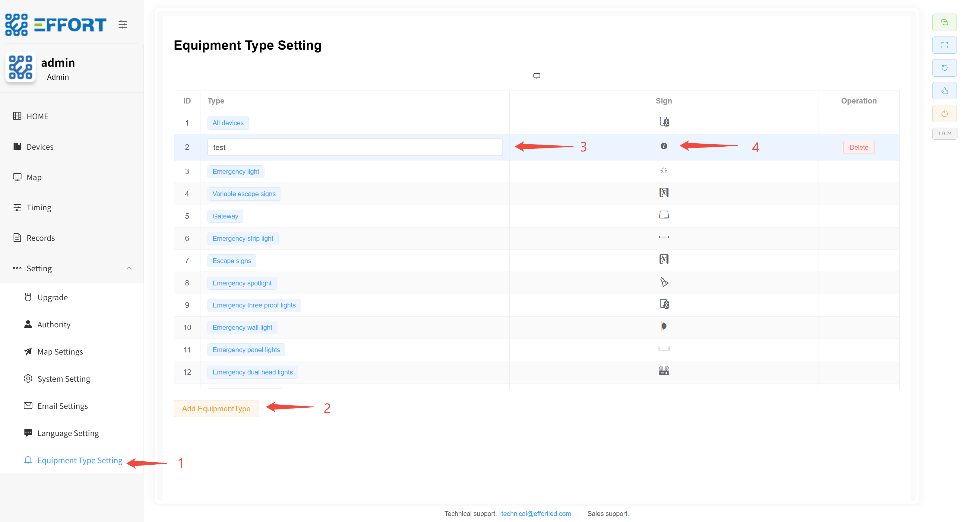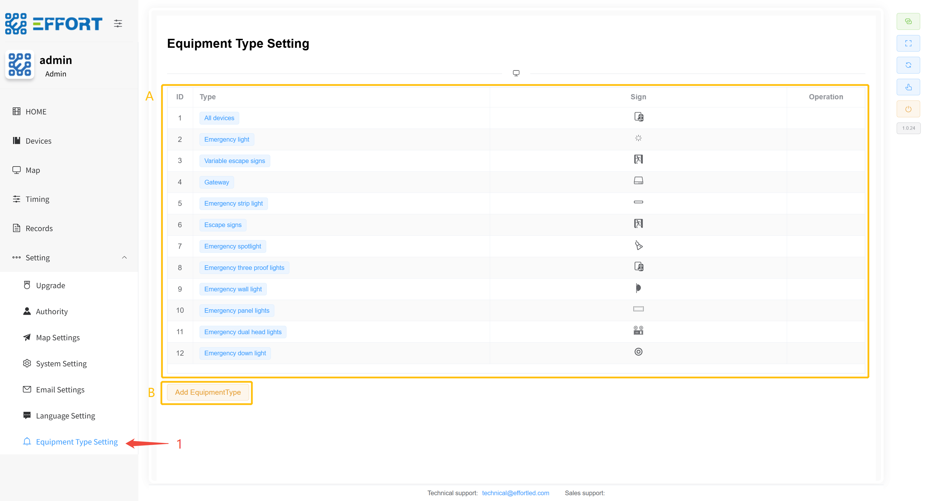 - 步骤 1:点击 Equipment Type Setting进入设备类型管理