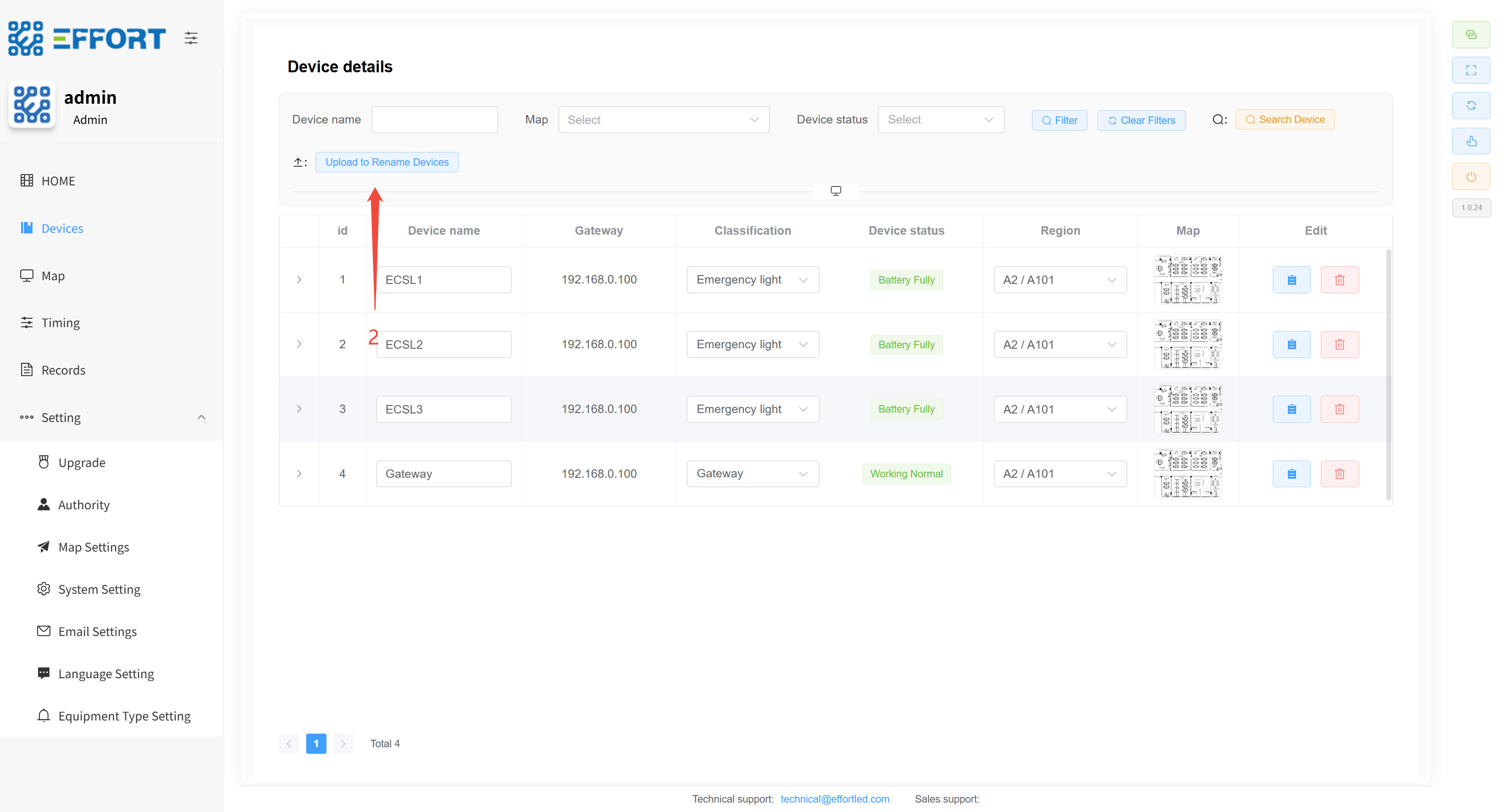 - 步骤 2:进入系统 device management 页面点击 choose file 导入刚刚的表格,设备重命名完成