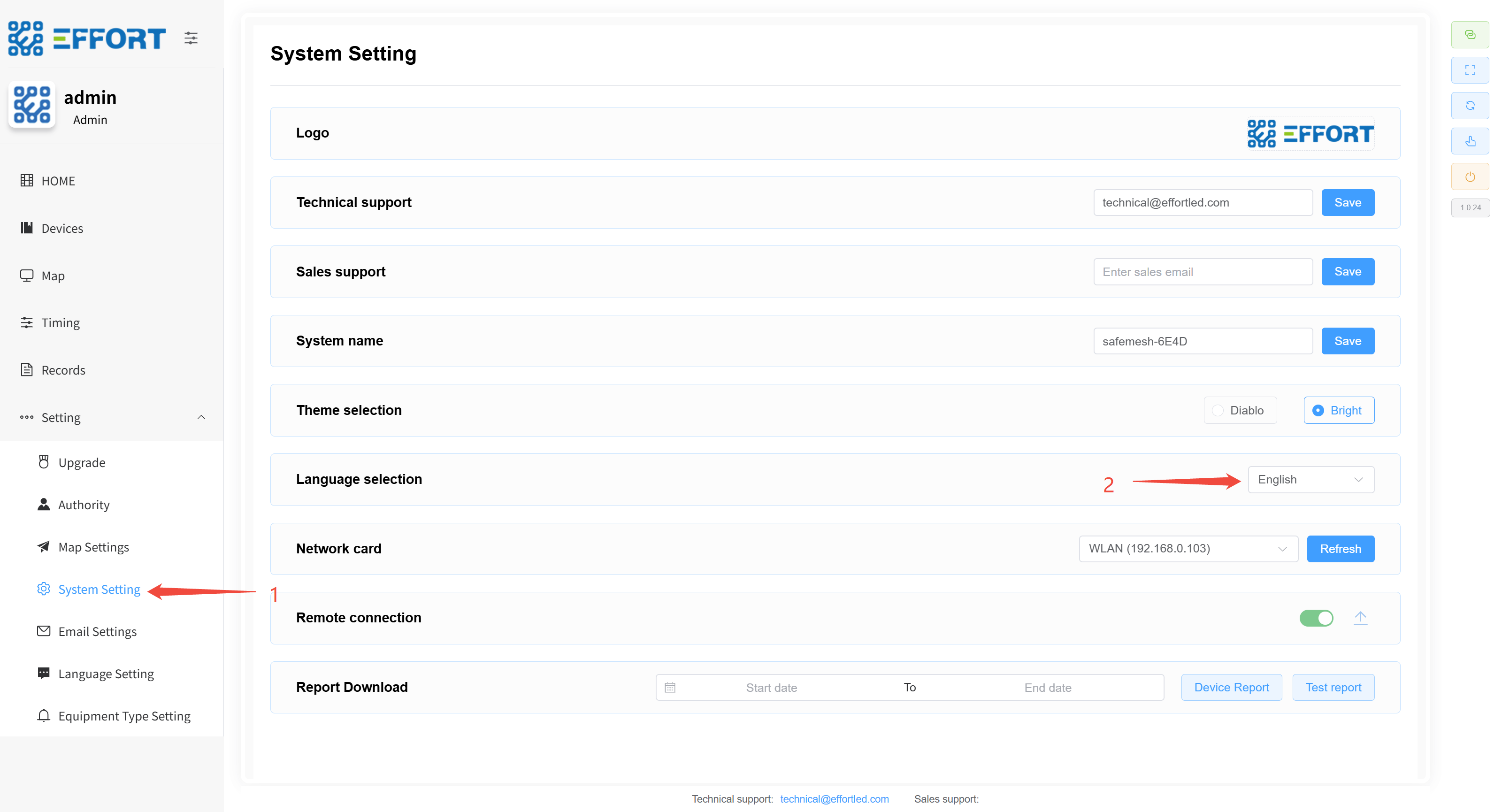 - 步骤 1:点击 System Setting ,进入系统设置页面