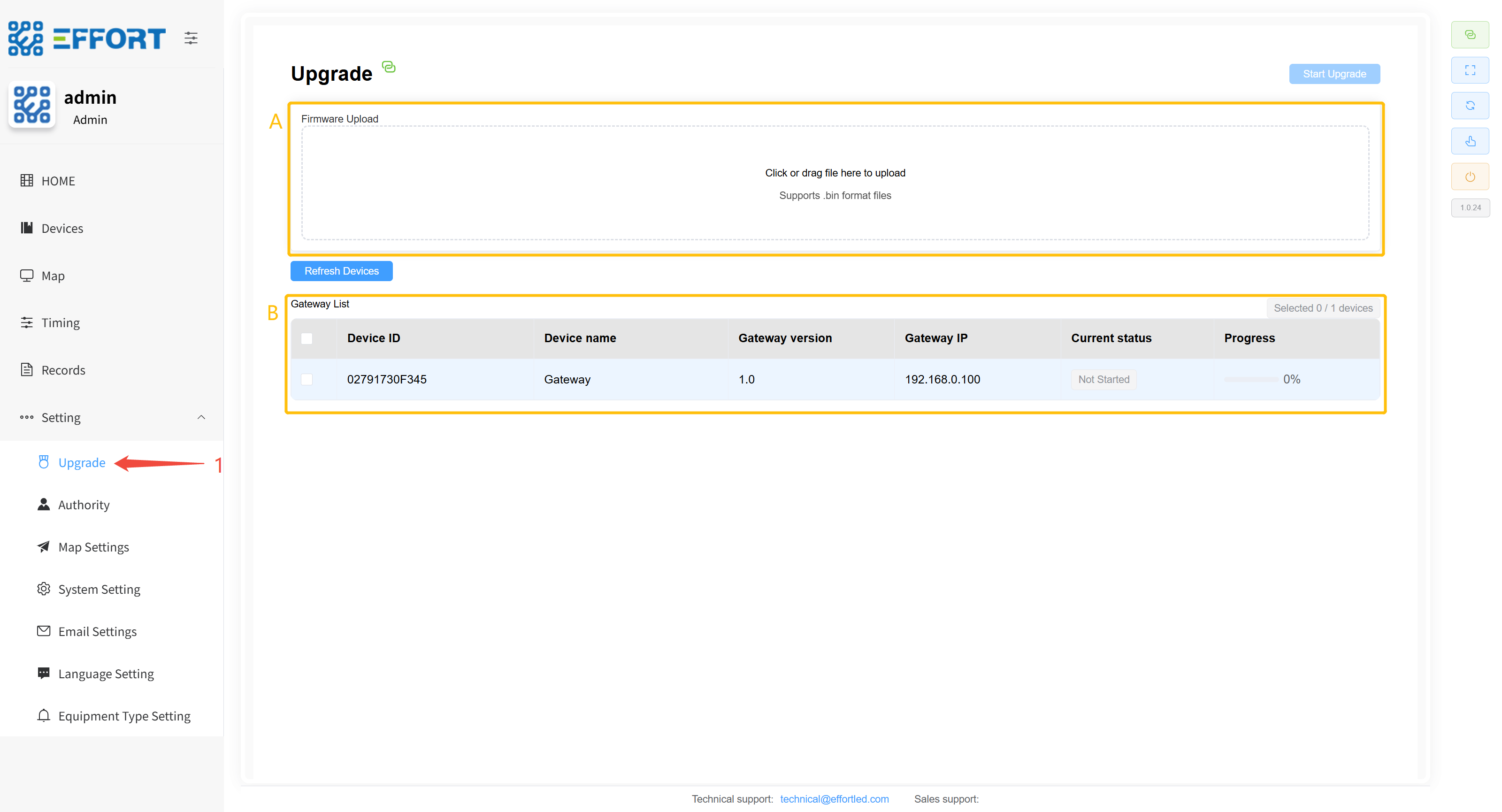 - 步骤 1:点击 Upgrade 进入固件升级页面