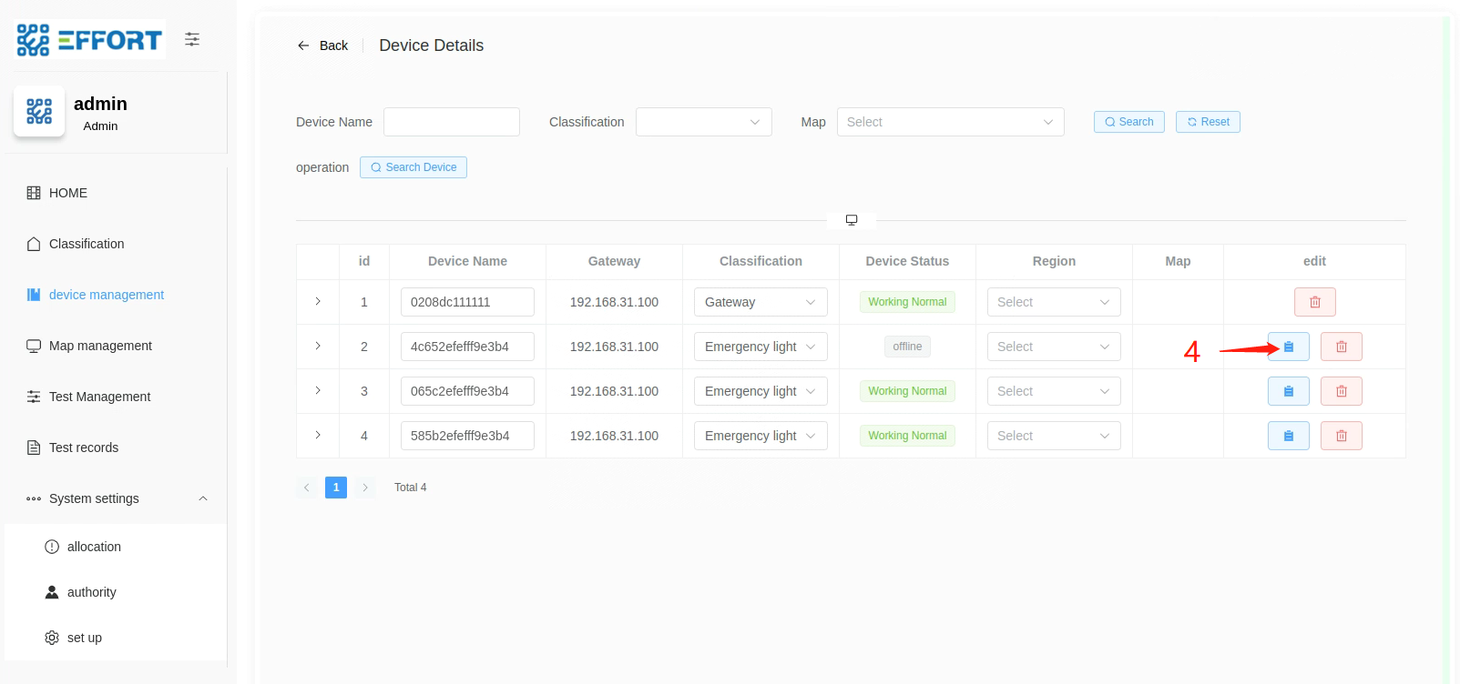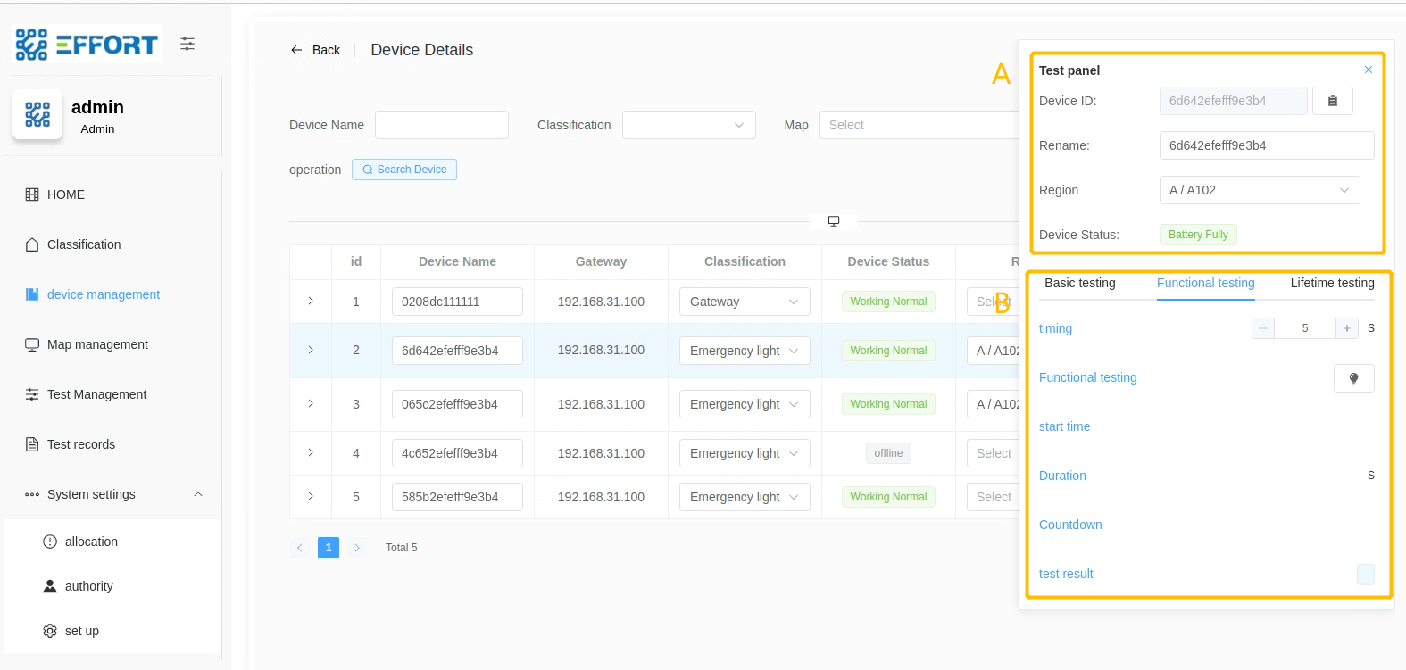 Classification:device management、Map management、Test Management、Test records 的跳转页面