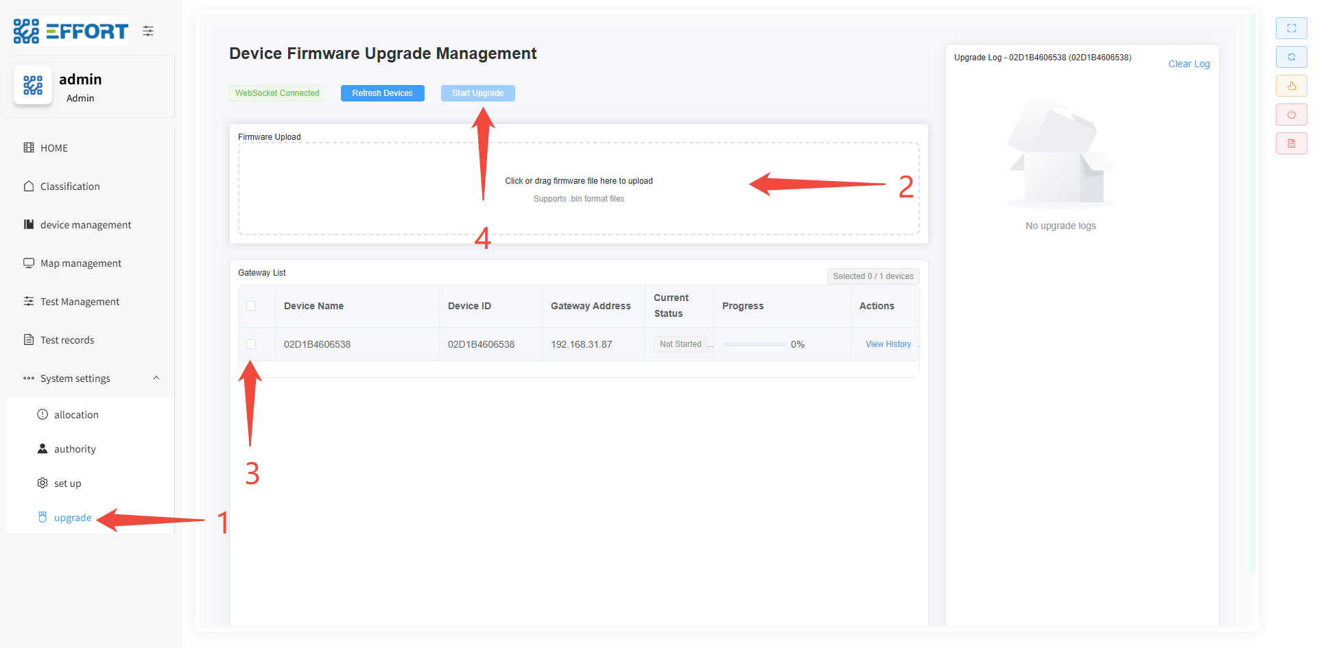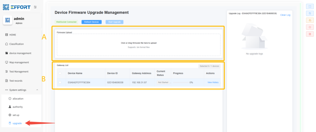 - 步骤 1:点击 upgrade 进入固件升级页面