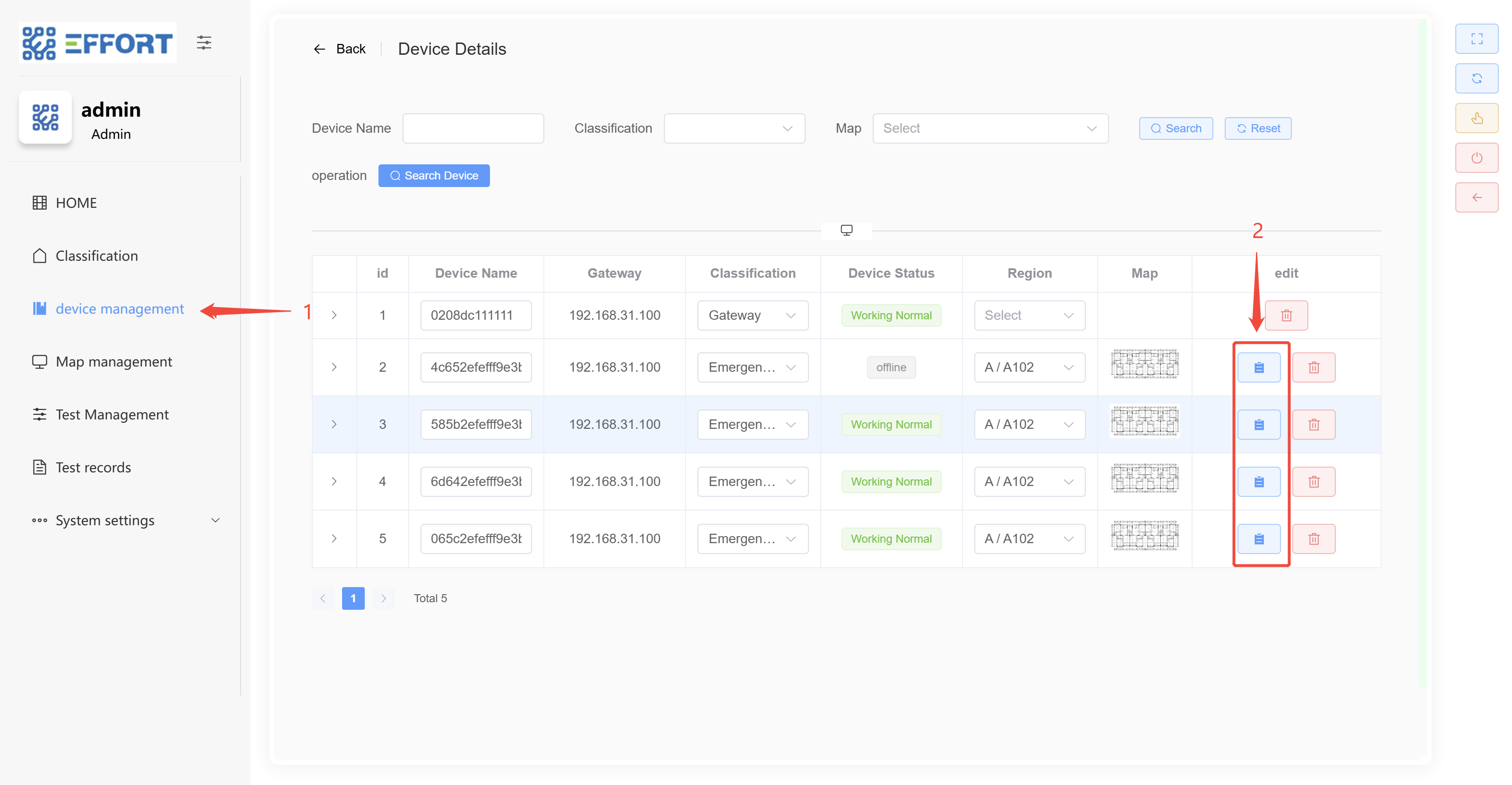 - 方框 D:设备基础信息:序号、设备名、网关、分类、状态、区域