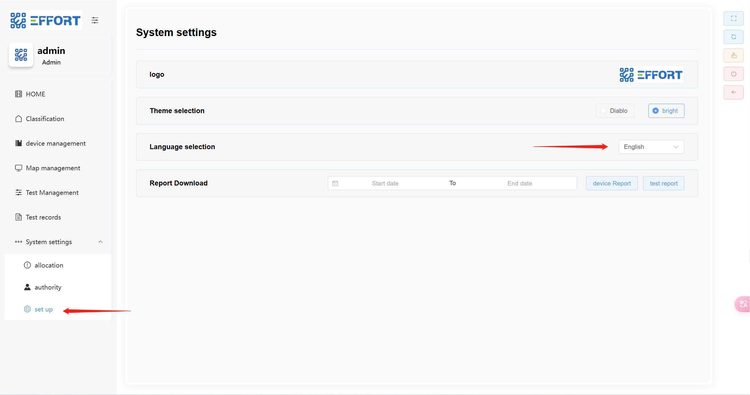 - 步骤 1:点击 System settings / set up,进入系统设置页面