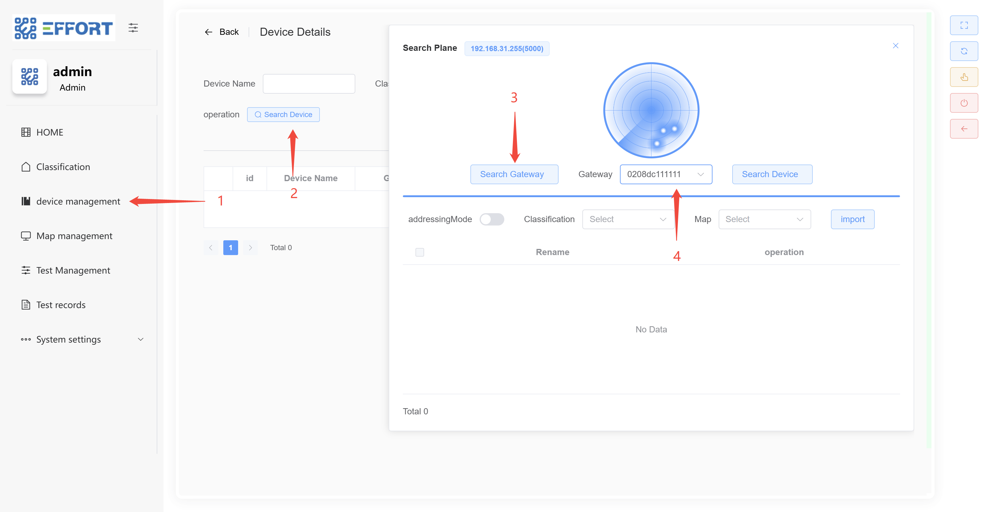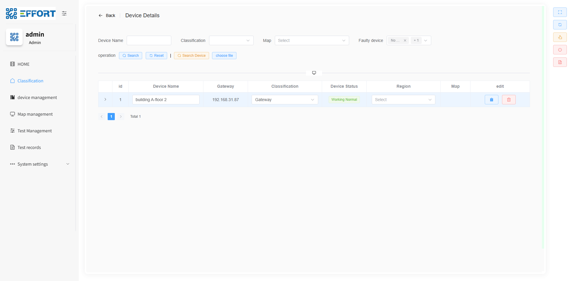 Device Details:搜索网关、搜索设备、设备详细信息、设备测试等功能页面