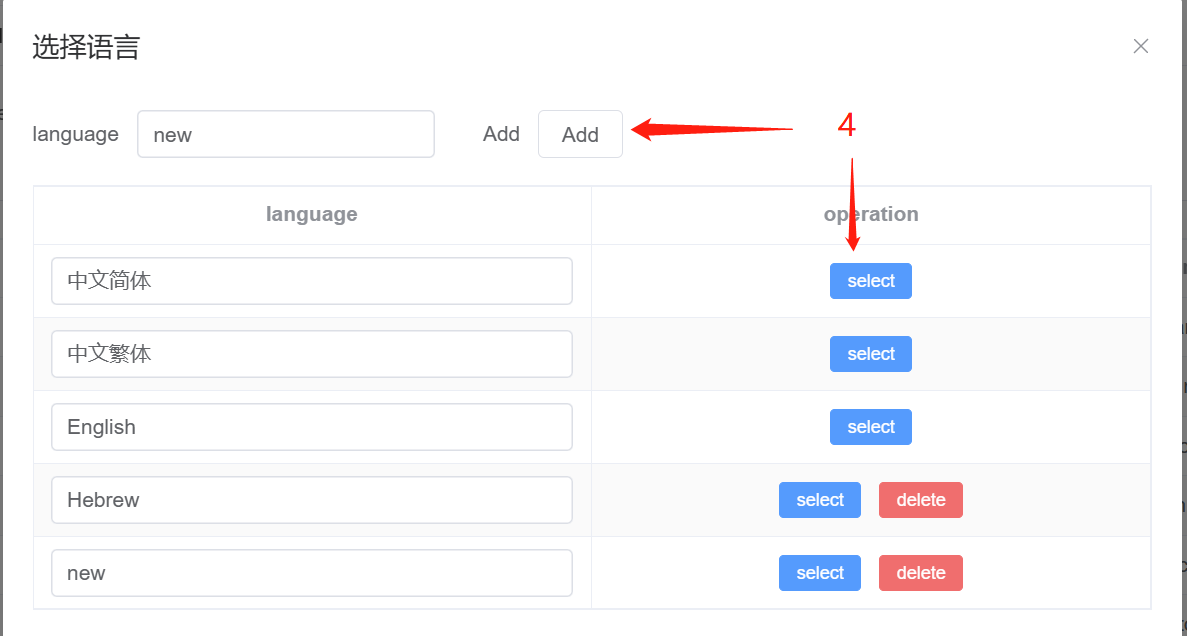 - 步骤 4:你可以自己新增一种语言模板,或者选择现有的语言模板