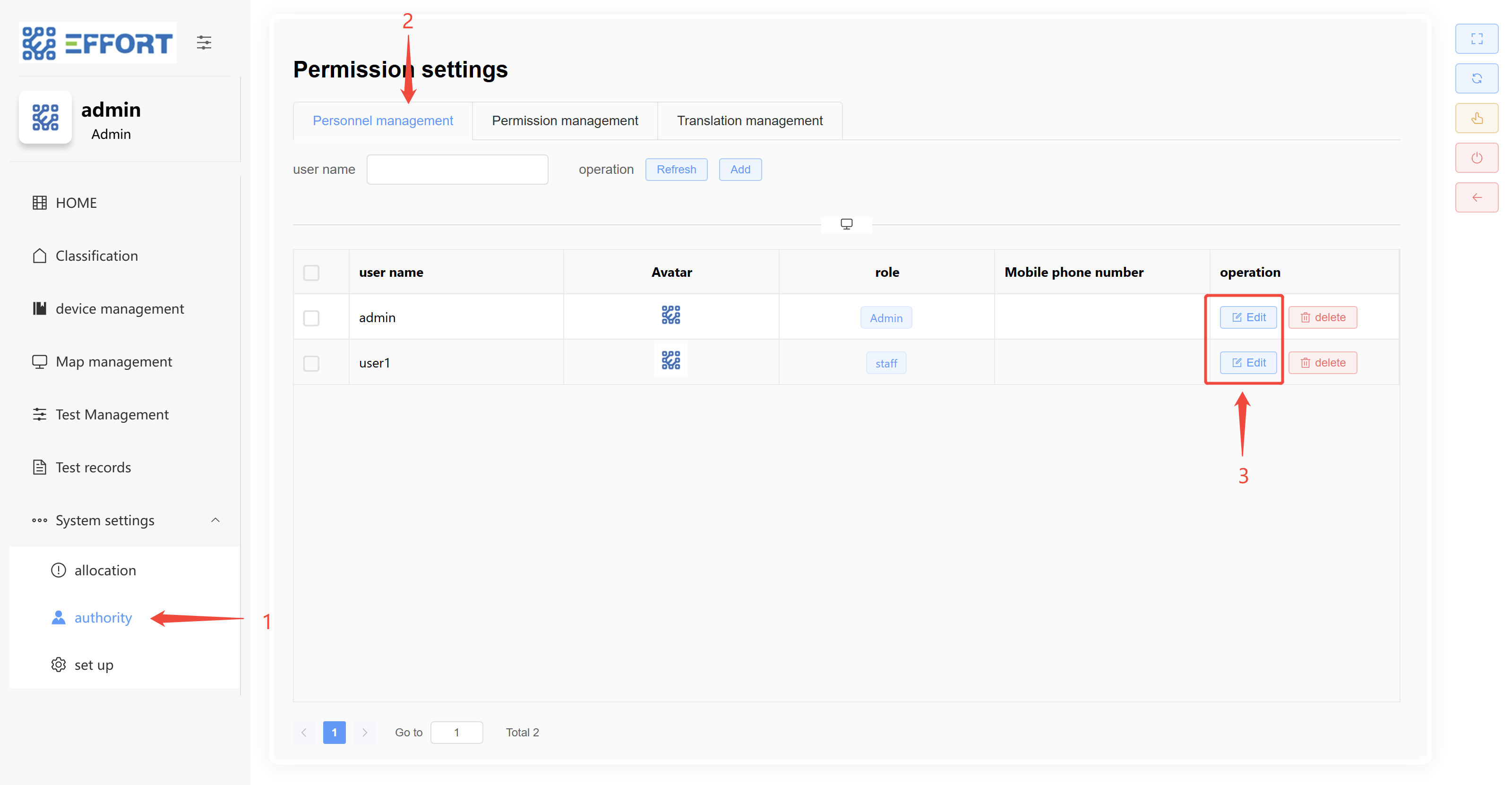 | 功能模块 | 操作用户权限 | 管理员权限 |