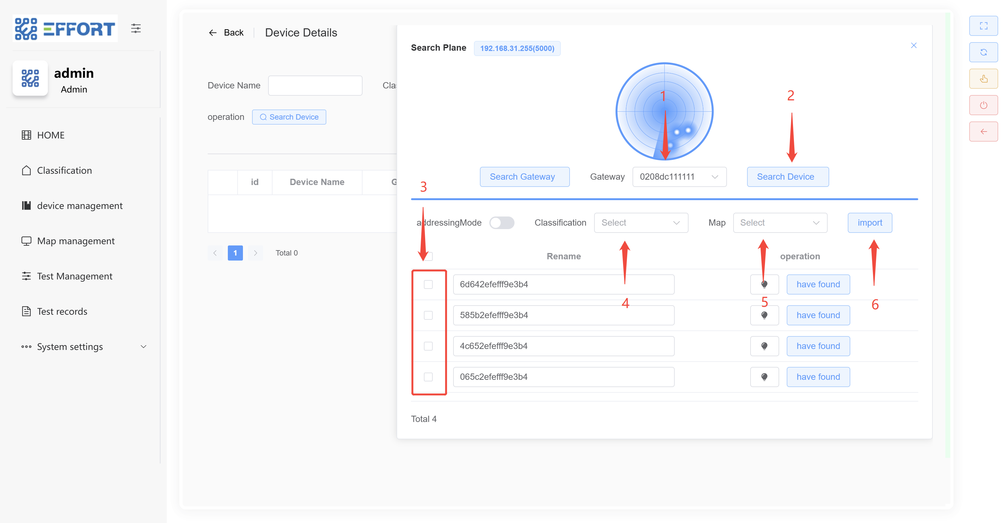 - 步骤 2:点击 Search Device,等待搜索完成,再次点击 Search Device,关闭搜索设备状态