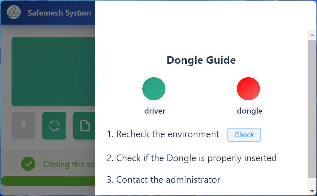 | 加密狗驱动状态:绿色:正常运行;红色:加密狗驱动异常 |
