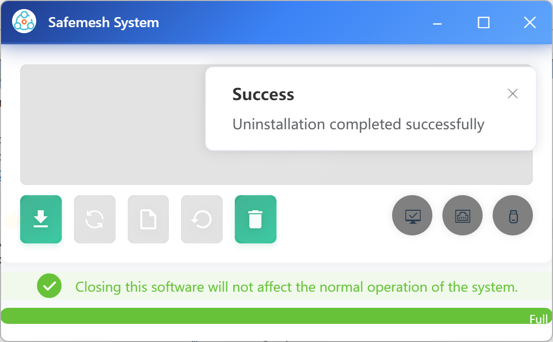 ⚠️ 注意:当前进度只是卸载了服务,点击 Install System 可再次安装。