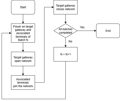 - 仅给批次 1 目标网关及其关联终端上电